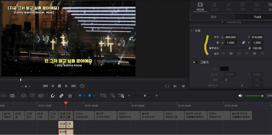 그런데 다빈치 리졸브에선 드래그한 위치부터 자막이 생성됨 아 왜 진짜