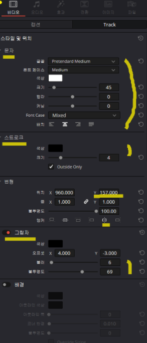 추가된 자막도 tack에서 스타일 변경하면 됩니다