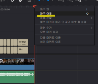 영상 종료되는 시점을 클릭 > 우클릭해서 마크아웃 누르기