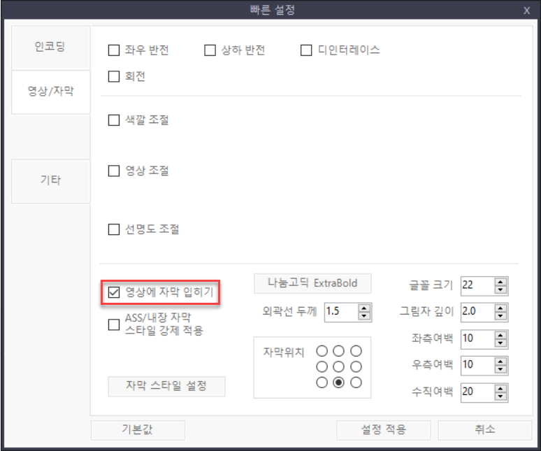 다만 자막 상세 위치는 조절 불가능.