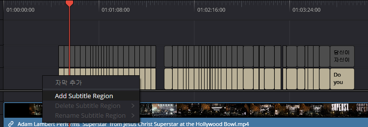 srt 자막 트랙에서 빈공간 우클릭 후 > add subtitle region 클릭